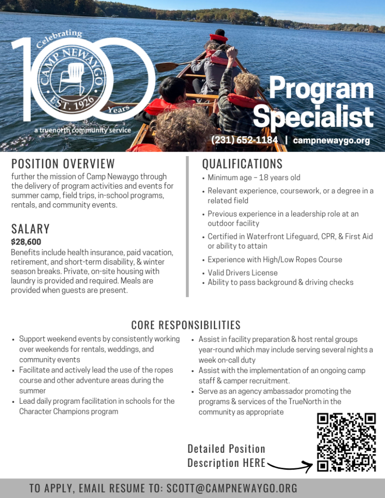 Camp Newaygo is hiring for the Summer 2026 Season!