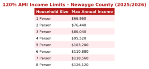 Eligibility for many of our scholarships is based on the 120% AMI Income Limits for Newaygo County. However, this is not the only consideration and should not stop you from applying if not applicable for you. is If you have any questions please call (231) 652-1184 or email campbiz@campnewaygo.org