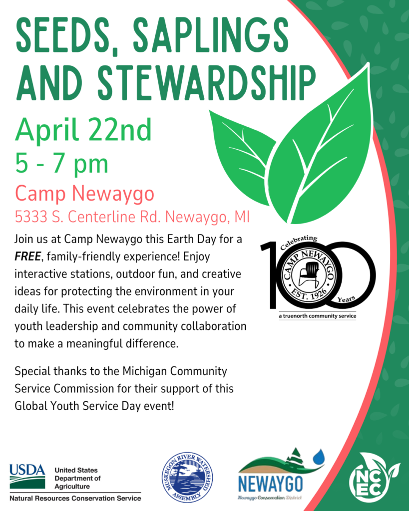 Designed for kids and families, this free event will include high-energy stations that connect action and care for the planet. Climb the rock wall, test your aim at archery, take home a native sapling, and explore interactive eearth-themed challenges that highlight how small choices and steady effort help protect the natural world. Additional hands-on stations will be provided by the Muskegon Watershed Resource Association, the Newaygo County Environmental Coalition, and Kropscott Farm Environmental Center, all coming to support this community celebration. Kids can bounce between stations at their own pace, while families enjoy an easy, come-and-go experience that works for all ages. This event is part of Earth Day 2026 and Global Youth Service Day, celebrating youth leadership and environmental responsibility. Free and open to the community.
